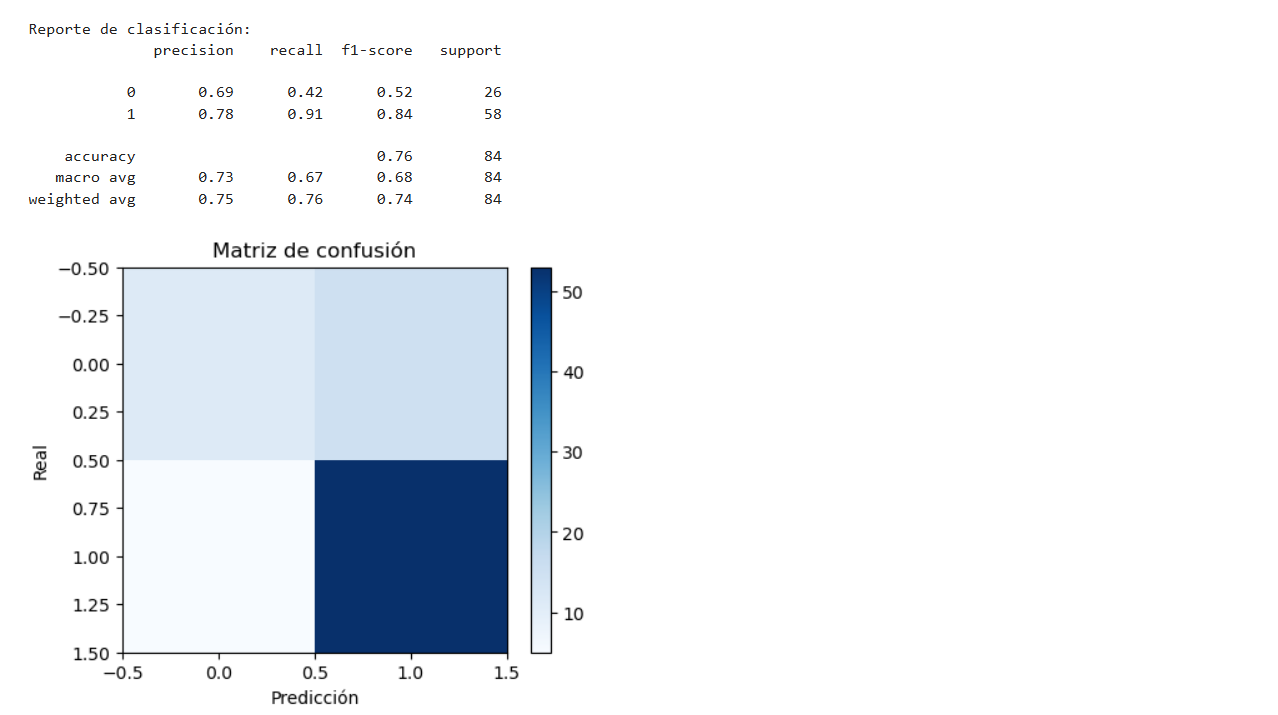 Accuracy: 0.76 · Mejor CV: 0.79 · F1 Macro: 0.75